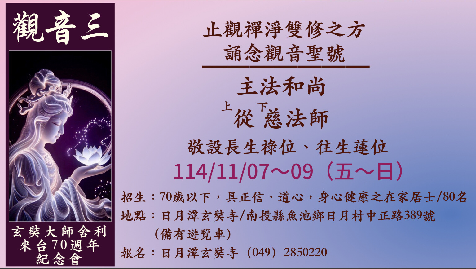 114年11月7日~11月9日 日月潭玄奘寺 彌陀、觀音三法會