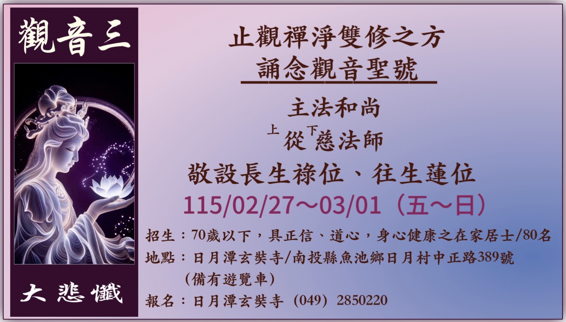 115年02月27日~03月01日 日月潭玄奘寺 大悲懺、觀音三法會